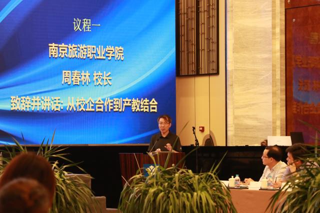 周春林校长作开幕式讲话并就“从校企合作到产教融合”作了深入的剖析与讲解,周春林院长强调校企深度产教融合应紧紧围绕国家“创新、协调、绿色、开放、共享”五大发展理念,紧扣我校“行业特色鲜明,国内一流、国际有影响力的旅游高职院校”目标,进一步深化产教融合与校企合作,通过大胆实践能够成为行业标杆。孙爱民处长解读了南旅院“关于推进产教融合、校企合作协同育人工作的实施意见”,吕新河院长就烹饪与营养学院现阶段校企深度合作专项班开展情况做了深入的介绍。