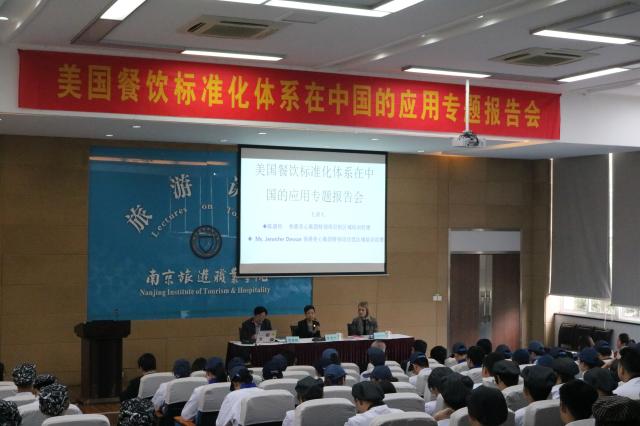 11月14日上午,烹饪与营养学院在二号教学楼报告厅举办了“首届创新创业实践周暨美食文化节”系列活动之一——“美国餐饮标准化体系在中国的应用”主题讲座。讲座由香港美心集团特别项目组区域培训经理陈惠珍和Ms.Jennifer Dewan联合讲解。烹饪与营养学院党总支书记胡国勤,副院长吕新河、颜忠,实训中心教室代表史红根以及学院师生学生代表共同聆听了此次讲座。