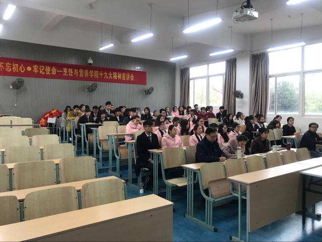 2017年12月13日下午15:00,烹饪与营养学院教工党支部邀请基础部管建莉老师于2202进行“不忘初心·牢记使命——烹饪与营养学院十九大精神宣讲会”,教师党员和入党积极分子参加了本次宣讲。