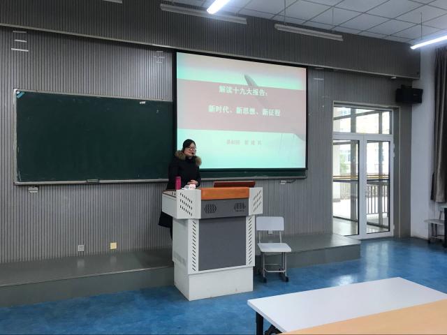 本次宣讲会的主题为:新思想引领新时代,新时代呼唤新作为。冬日的烹饪学院,阳光温煦,一间教室里,多名师生专心致志聆听管老师宣讲党的十九大精神。她系统阐述了新时代中国特色社会主义思想、新时代中国特色社会主义基本方略,并介绍了十九大提出的全面建设社会主义现代化国家的时间表路线图,为实现中华民族伟大复兴提供了科学指引。宣讲很生动,牢牢抓住了大家的注意力,理论高屋建瓴,举的例子非常鲜活生动,让我们对党的十九大精神有了更深入的认识。管老师深入剖析十九大的报告,聚焦到习近平新时代中国特色社会主义思想是党必须长期坚持的指导思想上,聚焦到五年来党和国家事业取得历史性成就和发生历史性变革上,聚焦到作出中国特色社会主义进入了新时代、我国社会主要矛盾已经转化为人民日益增长的美好生活需要和不平衡不充分的发展之间的矛盾等重大政治论断的深远影响上,聚焦到贯彻落实党的十九大的重大决策部署上,聚焦到以习近平同志为核心的新一届中央领导集体是深受全党全国各族人民拥护和信赖的领导集体上,聚焦到习近平总书记是全党拥护、人民爱戴、当之无愧的党的领袖上……娓娓道来、切中肯綮的宣讲报告,犹如下了一场“及时雨”,扎实有效地推动党的十九大精神走进我们身边,帮助我们进一步加深对党的十九大的精神实质、精髓要义、政策措施的认识,受到我院党员同志和入党积极分子的热烈欢迎。