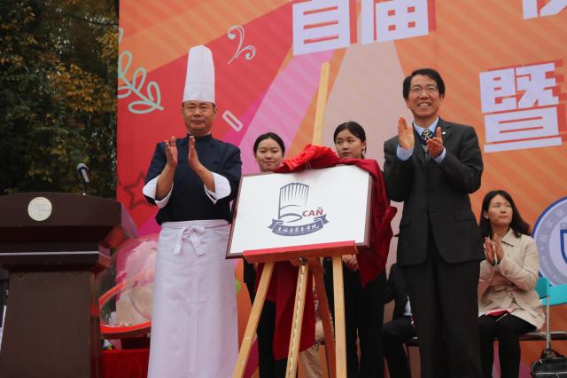 凉风送爽,丹桂飘香,2017年11月13日上午9时30分,南京旅游职业学院烹饪与营养学院首届“夜上海”创新创业实践周暨第六届蓝蛙美食文化节在马踏飞燕广场举办了盛大的开幕典礼。出席开幕典礼的嘉宾有江苏省委第四巡视组副组长邱正祥及巡视组各位领导、南京旅游职业学院党委书记王海平、南京旅游职业学院校长周春林及各部门领导、南京月尚夜上海餐饮管理有限公司董事长夏明龙和UNWTO旅游教育质量认证专家Dr. Daniel Payron。