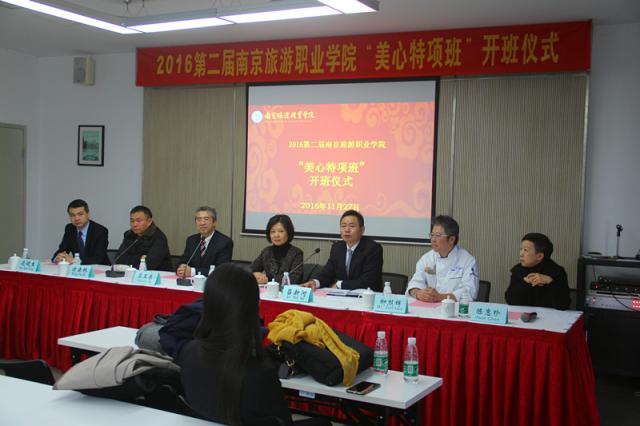 11月27日上午,南京旅游职业学院2016第二届“美心特项班”开班仪式在行政楼1111会议室隆重召开,副校长冯明、教务处处长方法林、烹饪与营养学院副院长吕新河、党总支书记胡国勤,以及美心集团卓联(上海)餐饮服务有限公司营运总监苏玉东、厨房行政总监柳烈辉等校企双方代表出席了本次开班仪式。会议由项目负责人吕慧老师主持。