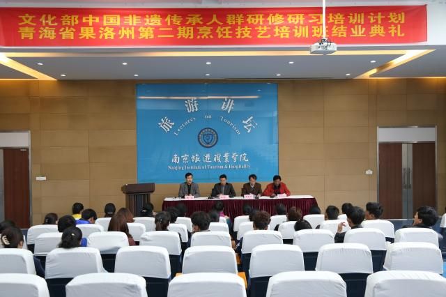 2017年3月31日下午,在南京旅游职业学院校领导的关心下,在烹饪与营养学院和人文艺术系的精心组织下,文化部非遗传承人群研修研习计划第二期青海果洛烹饪技艺培训班在学校二号楼报告厅圆满落下帷幕。南京旅游职业学院周春林校长出席了结业典礼,并作了讲话重要讲话。此培训项目是根据《文化部办公厅、教育部办公厅关于实施中国非遗传承人群研修研习培训计划的通知》〔办非遗函(2015)581号〕精神,以及文化部项兆伦副部长在2016年暑期在回访非遗研培计划青海果洛藏族自治州学员座谈会上的讲话要求而举办的。此次培训有如下几大特色: