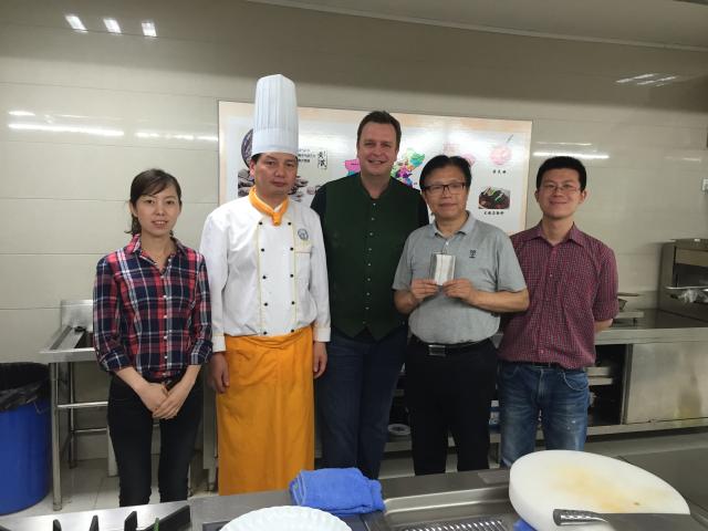 5月23日,奥地利ELGAUCHO餐饮集团总经理Robert Grossauer来我校就西餐、中餐、西点和中点教学进行为期一周的交流访问。