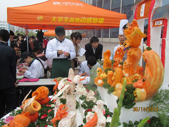 以培养高素质烹饪人才为先导,不断提升人才培养水平,扎实推进人才培养模式改革,20121130日,烹饪工艺与营养系在继第25届“成才杯”技能大赛之后,在行政楼前拉开了第一届“美食文化节”的帷幕。本次活动在邵万宽主任亲自指导下,由胡国勤副书记组织、策划,同时得到我系全体教师的大力支持和学生们的积极响应。