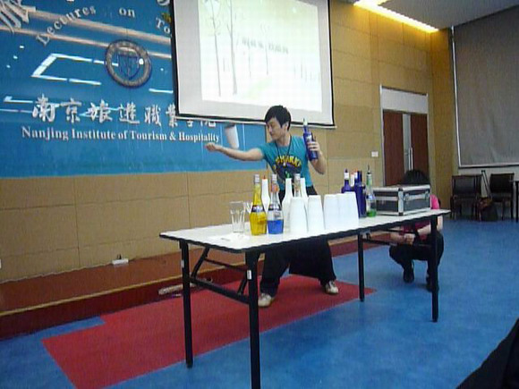 在大三学子介绍自己实习的辛酸和收获后,我系请来业界知名调酒师带来精彩的花式调酒表演,在同学们的掌声和惊叹声中,他们更加深刻地感受到成功背后要付出无尽的汗水。