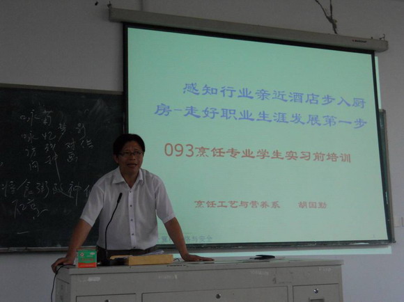 针对学生们在实际实习工作中可能会遇到的一些问题和困难,胡国勤书记以其丰富的阅历就“感知行业、走进酒店、步入厨房、走好职业生涯发展第一步”为主题,提出了具体的实习要求和指导原则,并对同学们的生活、学习安排提出了建设性的意见,以尽可能详尽的方式为同学们的实习工作指明了方向,希望同学们在实习中能准确定位、抓住良机、力求突破,为顺利就业作好铺垫。