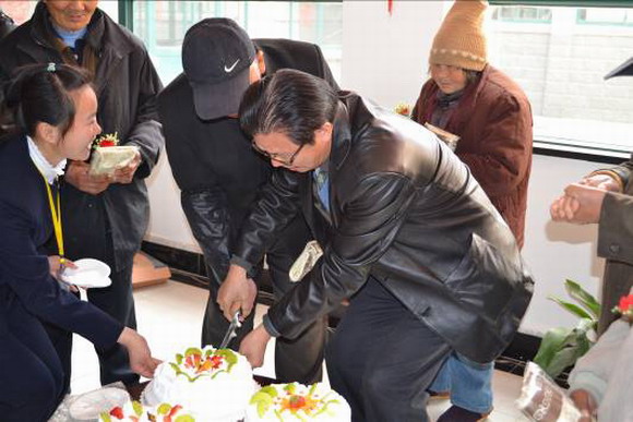 节目接近尾声,生日快乐歌响起,胡书记跟老人们一起切蛋糕,唱生日歌,老人品尝着蛋糕,每个人脸上都洋溢着幸福的笑容。快乐的时光总是如此短暂,最后,我们带着老人们的感谢、心中的不舍,离开了敬老院。