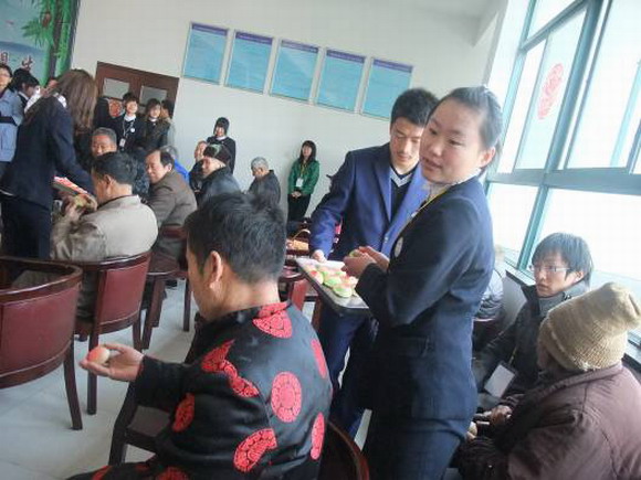 2011年3月27日清晨,我系103中西点制作工艺班全体团员在辅导员吕慧老师的带领下来到南京江宁区秣陵街道敬老院慰问孤寡老人,参加此次活动的还有烹饪工艺与营养系党支部副书记胡国勤老师、系部秘书孔臻老师。