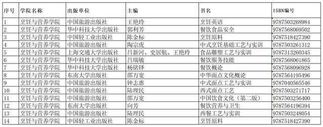 为加强对教学工作的指导,促进教材选用工作更加科学、可行,根据《南京旅游职业学院教材管理办法》,现将烹饪与营养学院2023-2024学年第1学期学生选用教材公示如下: