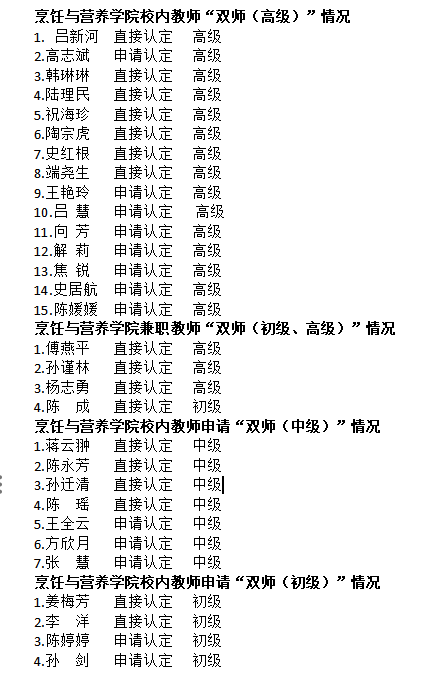 根据南京旅游职业学院工作要求部署,烹饪与营养学院开展了2023年“双师型”教师认定工作。经本人申请、学院初审,拟推荐以下30人为“双师型”教师。具体情况如下: