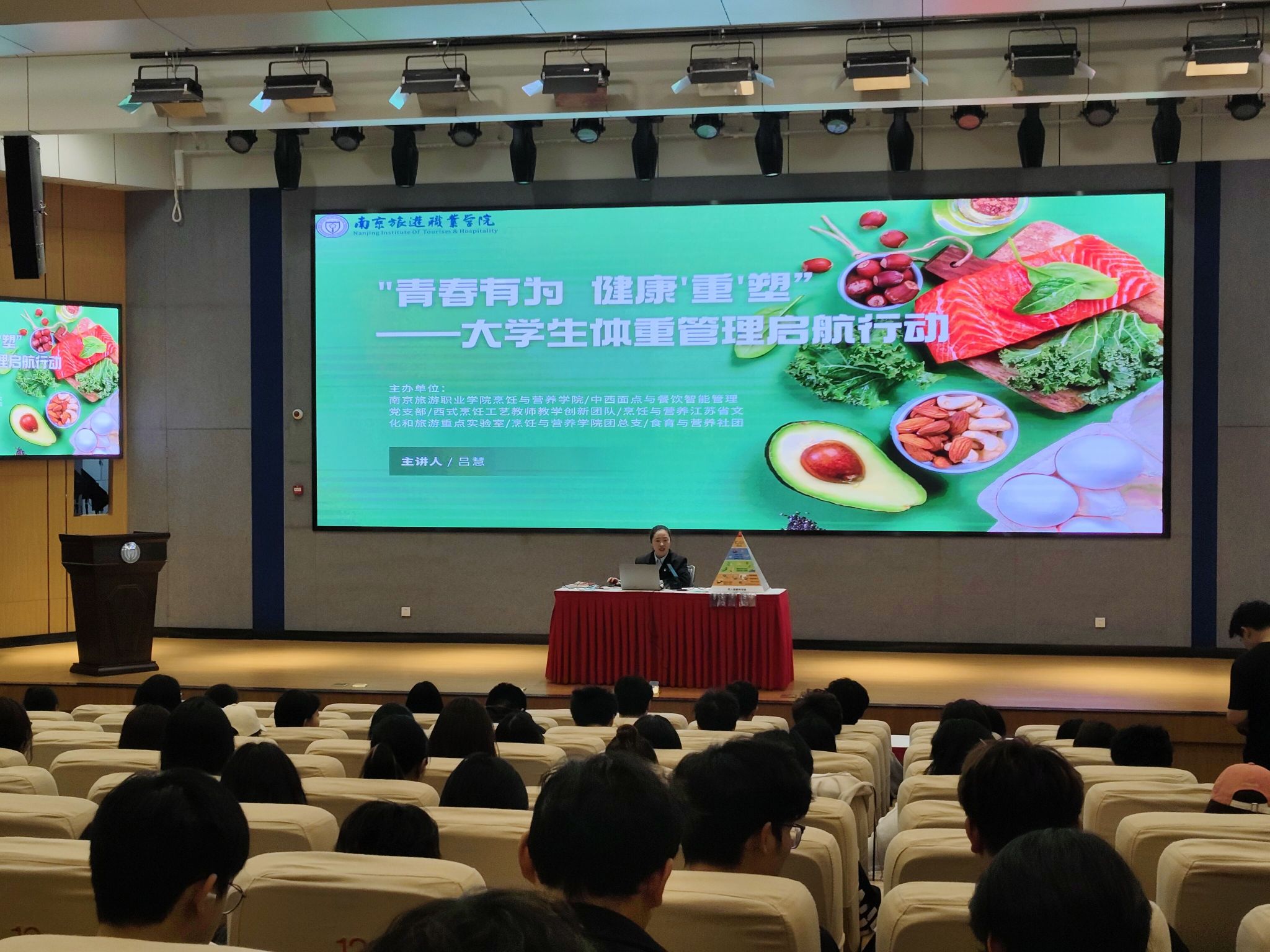 为积极响应国家"体重管理年"行动号召,引导当代大学生树立科学体重管理理念,推动学生健康素养提升,烹饪与营养学院中西面点与餐饮智能管理党支部联合烹饪与营养学院团总支于3月26日下午在图书馆报告厅开展了“青春有为 健康‘重’塑——大学生体重管理启航行动”主题宣讲活动,活动由中西面点与餐饮智能管理党支部书记、营养学专家吕慧老师担任主讲人,由食育与营养社团的指导老师朱星桐主持,吸引了近200名学生参与,现场反响热烈。