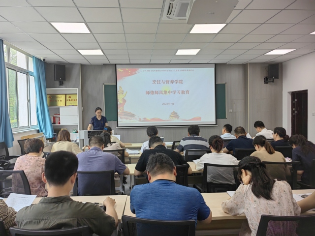 为深入学习贯彻习近平新时代中国特色社会主义思想,贯通落实习近平总书记关于教育的重要论述和指示批示精神,坚决落实新时代教师职业行为十项准则,加强新形势下师德师风建设,筑牢广大教师为党育人、为国育才初心使命,7月6日,烹饪与营养学院组织全体教职工在党员之家1104开展烹饪与营养学院师德师风集中学习教育。会议由党总支书记陈瑶主持。