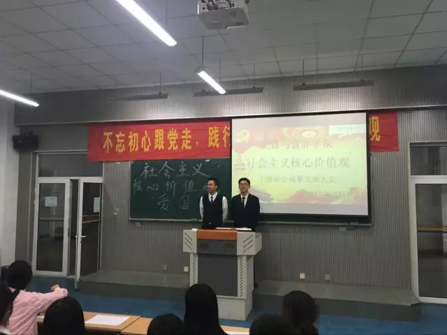 2017年5月15日晚,烹饪院在各班开展“不忘初心跟党走,践行社会主义核心价值观”主题班会,此次社会主义教育活动学院非常重视,在烹饪院党总支书记胡国勤指导下进行,辅导员王恭博老师,张玉株老师现场观摩并发表重要讲话。在163级多个班级开展了“文明”“爱国”“自由”“和谐”等多个主题的社会主义价值观教育活动。