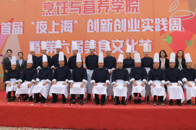 首先,烹饪与营养学院副院长(主持工作)吕新河、南京旅游职业学院党委书记王海平、活动冠名企业夏明龙董事长分别对同学们作了简短的讲话。他们指出创新创业实践周的设立是为了更好贯彻落实习近平总书记“十九大”报告及在全国思想工作会议等重要讲话精神,推进“大众创业、万众创新”战略和现代学徒制改革进程,弘扬大国“工匠精神”。本次创新创业实践周包含一系列传承烹饪文化、提升师生创新创业能力的活动,其中包括新生拜师仪式、烹院新LOGO揭牌、各类专题讲座、食品安全及刀具使用安全承诺签名仪式、职业素质达标宣誓、美食文化节、厨师技能素质专题研讨、校企合作教师工作站授牌、国宴御厨厨艺展示、烹饪学生创新创业峰会、成才杯烹饪技能大赛等等。最终通过整个实践周增强学生创优、创新、创造、创业的意识,提升师生创新创业水平。