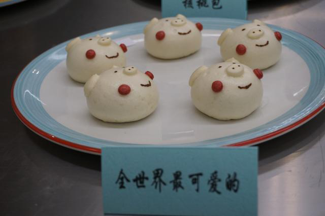 中式面点将“灵巧”二字淋漓尽致地体现了出来,同学们将一张面皮,一点馅料就可捏成大小一致,褶皱均匀,外形美观的花色蒸饺,而自选创意包的制作更是体现了参赛同学们的创意,形态更是花色多样,让人不禁赞叹中式面点的品种之丰富,形态之多样。西式面点则体现出了很强的工艺性,在制作每道工序时同学们都将配料比例掌握地非常清楚,制作过程中更是用着心去感受甜点所带来的乐趣,同学们制作的成品更是充分展现了蛋糕的绵软清香,饼干的香甜酥脆。