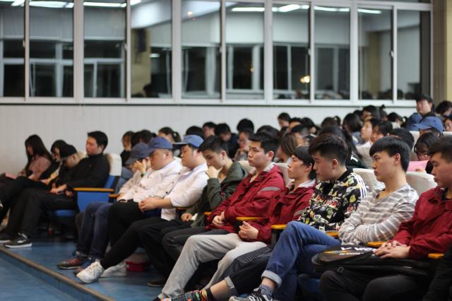 大会在胡国勤老师的讲话中开始,书记回顾大二同学一年的成长与进步。让同学们对新学期的生活充满期待。根据目前形势、行业需求、主要目标。确立自己的职业人生规划,和实习方向。对自己的未来负责。认真总结和反思一年的学习。知识丰富与技能锻炼要同步发展。养成良好的职业素养,选择着一条适合自己的发展道路。