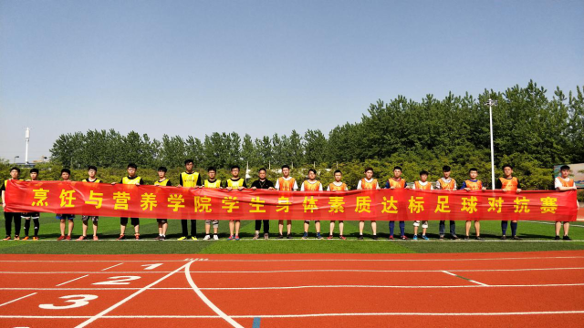 绿茵球场,青春激扬,为了展现当代大学生积极向上的精神风貌,增强校园文化氛围,促进身体素质达标,2018年4月18日,烹饪与营养学院组织展开了一场学生会与社团联合会的友谊足球对抗赛。出席本次足球对抗赛的有烹饪与营养学院学生党支部书记王恭博老师、实训中心史居航老师以及各位学生代表。