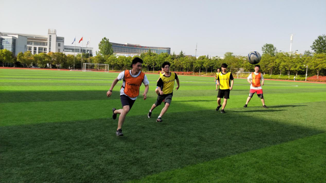 绿茵球场上,烹饪与营养学院同学们分为橙(学生会)、黄(社团联合会)两支球队。对抗赛由王恭博老师担任裁判员、史居航老师来为对抗赛开球。青春的活力在足球场上迸发、相互碰撞,没有拘束、没有忧虑,欢声笑语才是我们当代大学生的旋律。绿茵场上只有队友、对手和球,其他的一切都显得不那么的重要。