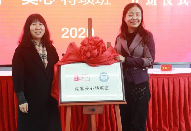 南京旅游职业学院操阳副院长与中国区人力资源总监沈双仁共同为第五届“美心特项班”进行揭牌仪式。
