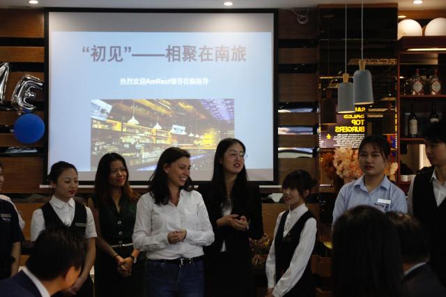 随后,校企双方于蓝蛙教室开展了“初见”相聚在南旅主题活动,蓝蛙企业领导品尝了专项班学生烹制的美食,并对专项班学生的学习成果给予了高度的肯定。学生们通过展示调酒技艺、手工绘画纪念册、班级纪念短片等形式,共同回顾了进入蓝蛙精英班后的成长历程和感触,每一个场景无不感动在场的每一位。