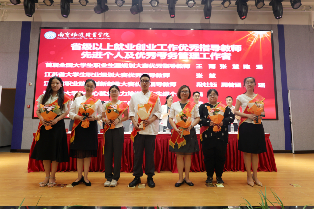 学生代表向各类受表彰老师送上鲜花和祝福,与会领导向学院教师年度人物、优秀教师和优秀教育工作者颁发荣誉证书。