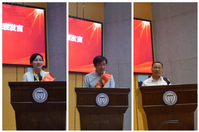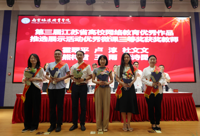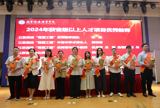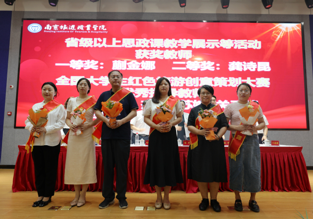 江苏高校2024年“青蓝工程”中青年学术带头人培养对象、人文艺术学院教师郑菲菲,江苏省教学能力比赛一等奖获得者、旅游外语学院教师刘淑义和学院2024年优秀教育工作者、教务处处长孙爱民作为获奖教师代表发言,三位老师分享了自己的从教故事,感谢学院提供的发展平台,表示将始终坚守教育情怀,将教育家精神融入教书育人实践,携手并进,继续为学院建设发展贡献力量。