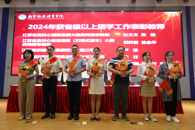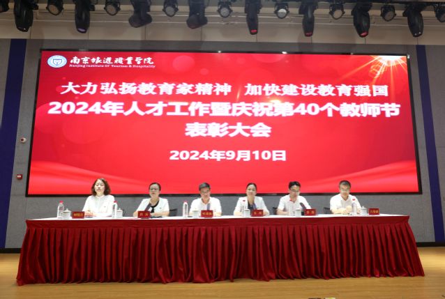 9月10日,南京旅游职业学院2024年人才工作暨庆祝第40个教师节表彰大会在图书馆报告厅隆重举行。党委书记叶凌波,党委副书记朱琰,党委委员、副院长洪涛、张骏,党委委员、宣传部部长何晓岩,党委委员、组织人事处处长王茂盛,全院中层干部、受表彰教师、教职员工代表300余人参加会议,会议由副院长张骏主持。