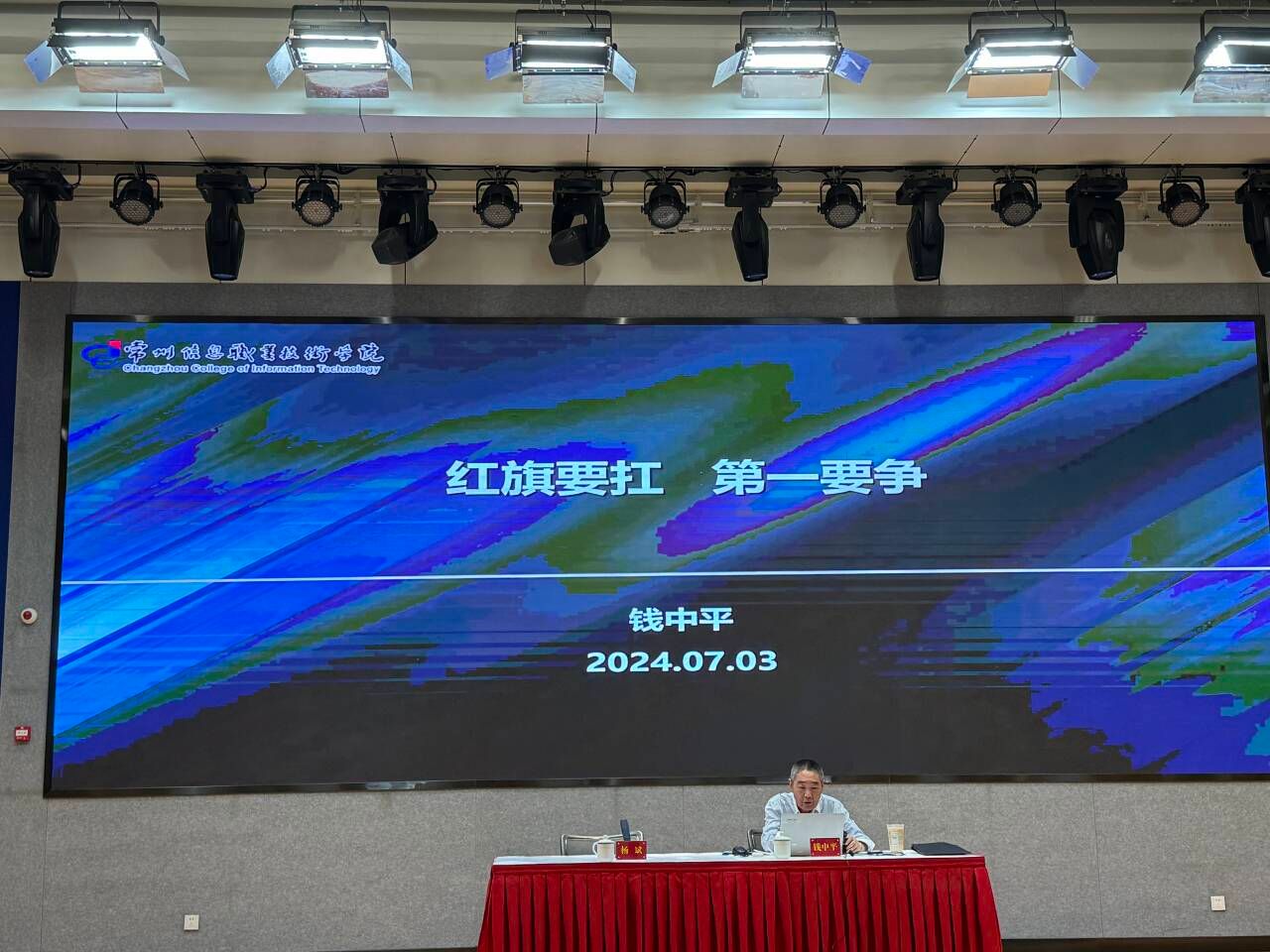 常州信息职业技术学院钱中平教授以《红旗要扛 第一要争》为主题,围绕高职院校管理实务,从高职院校管理、中层干部以及普通教职工三个维度进行讲解,分析了高职院校管理的十个重要关系以及痛点、难点和盲点,鼓励大家立足本职岗位,同心同向同行,做优秀的南旅人,推动学院高质量发展,做南旅院历史的见证者和书写者。