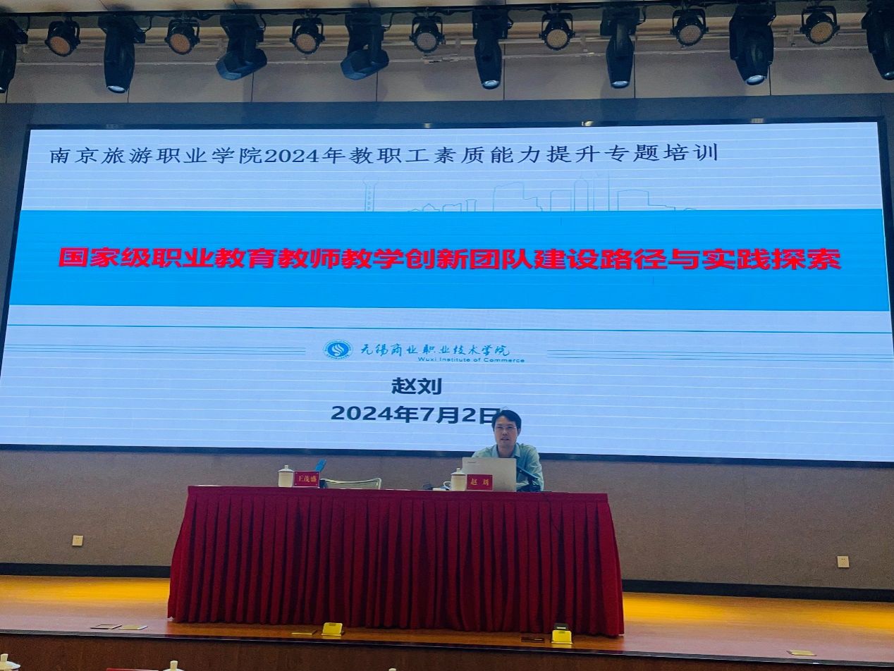 无锡商业职业技术学院赵刘教授在《国家级职业教育教师教学创新团队建设路径与实践探索》的专题培训中,系统梳理了国家级教师团队的启动背景和相关政策文件,详细介绍了考核验收环节和流程;围绕具体建设任务,赵刘结合所负责的第二批国家级职业教育教师教学创新团队建设实践分享了具体做法和经验,最后从师资队伍建设、模块化教学改革以及发挥示范引领作用三个方面分享了自己的思考,为我院建设高水平教师团队提供了学习和参考。