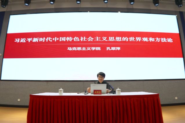 开班后,马克思主义学院副院长孔翠萍以《习近平新时代中国特色社会主义思想的世界观和方法论》作专题授课。她围绕领悟“六个必须坚持”全面解读习近平新时代中国特色社会主义思想的世界观和方法论,深刻揭示了习近平新时代中国特色社会主义思想的鲜明特征和理论品格。