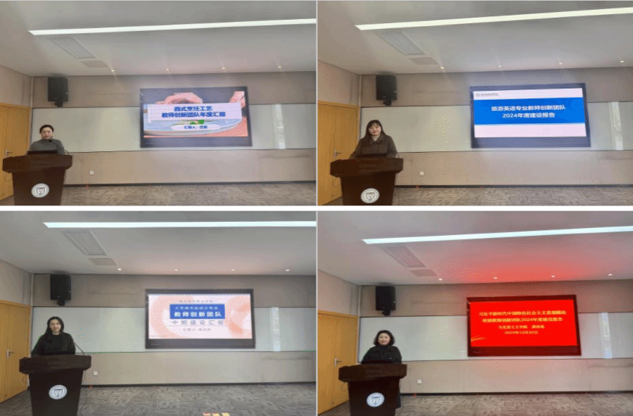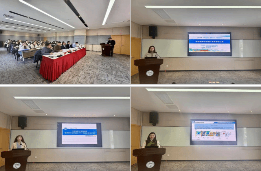 酒店管理与数字化运营国家级教师创新团队负责人张骏从团队目标规划、师德师风建设、教学改革成效、团队协作机制、科研与社会服务等方面进行了详细汇报。省级及校级教师创新团队负责人也分别从团队发展现状及未来规划等方面展开陈述。