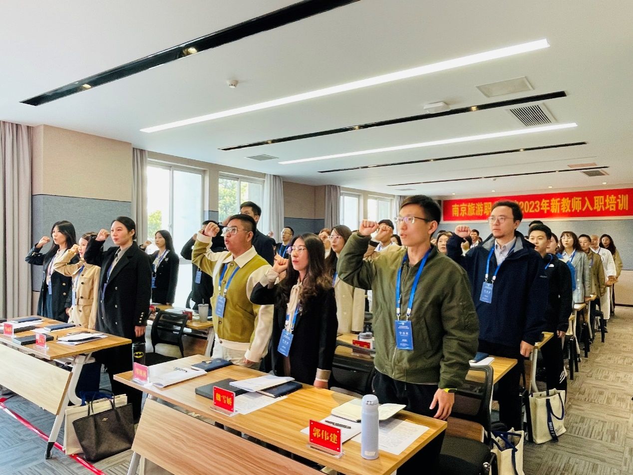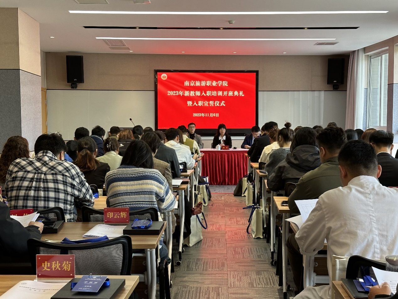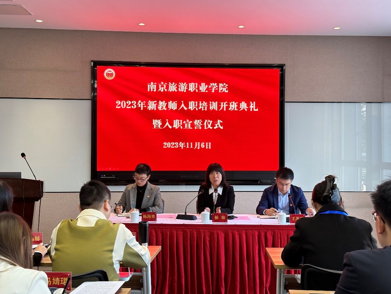 新教师代表基础部教师袁一帆作了发言,他表示作为加入南京旅游职业学院大家庭的一员,对未来充满期待。他感谢学院提供的实现人生抱负的机会和展示自我风采的舞台,自己将十分珍惜工作岗位,将“四有”好老师标准内化于心、外化于行,将立德树人贯穿于教学服务全过程,努力提升自己,尽快适应工作,以只争朝夕、舍我其谁的精神状态,为学院领跑全国旅游高职教育贡献自己的力量。