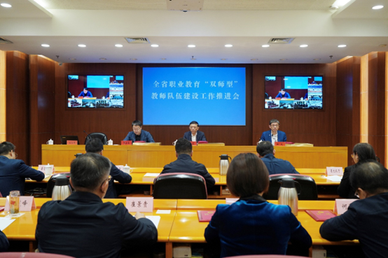 10 月 20 日上午,省教育厅组织召开全省职业教育“双师型”教师队伍建设工作推进会,省委教育工委副书记潘漫出席会议并讲话。会议以视频形式召开,主会场设在省教育厅会议室,院党委书记叶凌波、相关职能处室和各二级学院(部)负责人于学院行政楼411会议室参加了会议。