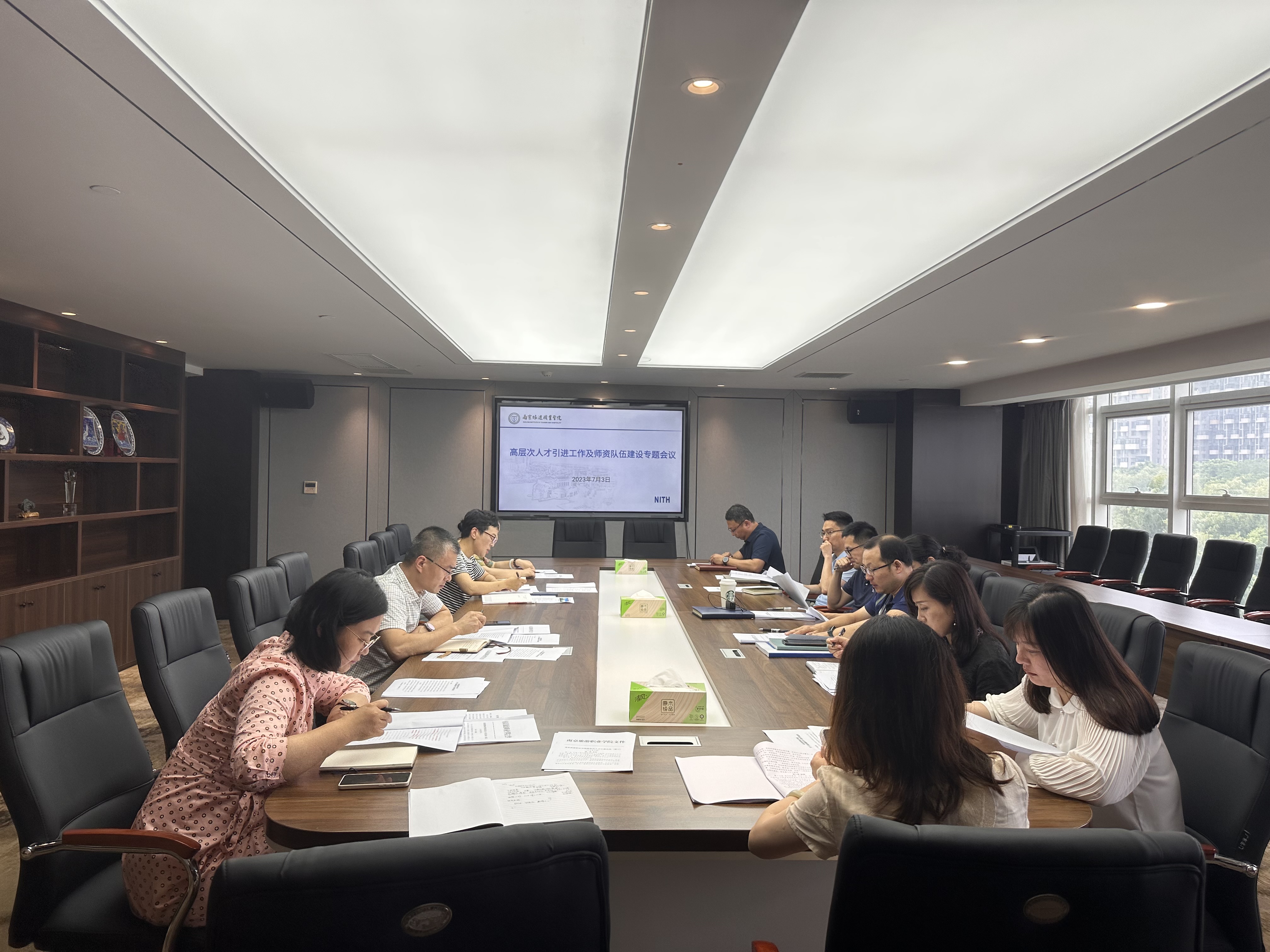 组织人事处副处长陈海艳对学院高层次人才引进工作进展情况作了介绍,总结了目前人才引进工作的实施情况,对《南京旅游职业学院高层次人才引进办法(修订)》进行了解读,并结合学院高水平校建设任务,就下一阶段人才引进及师资队伍建设任务进行了说明。