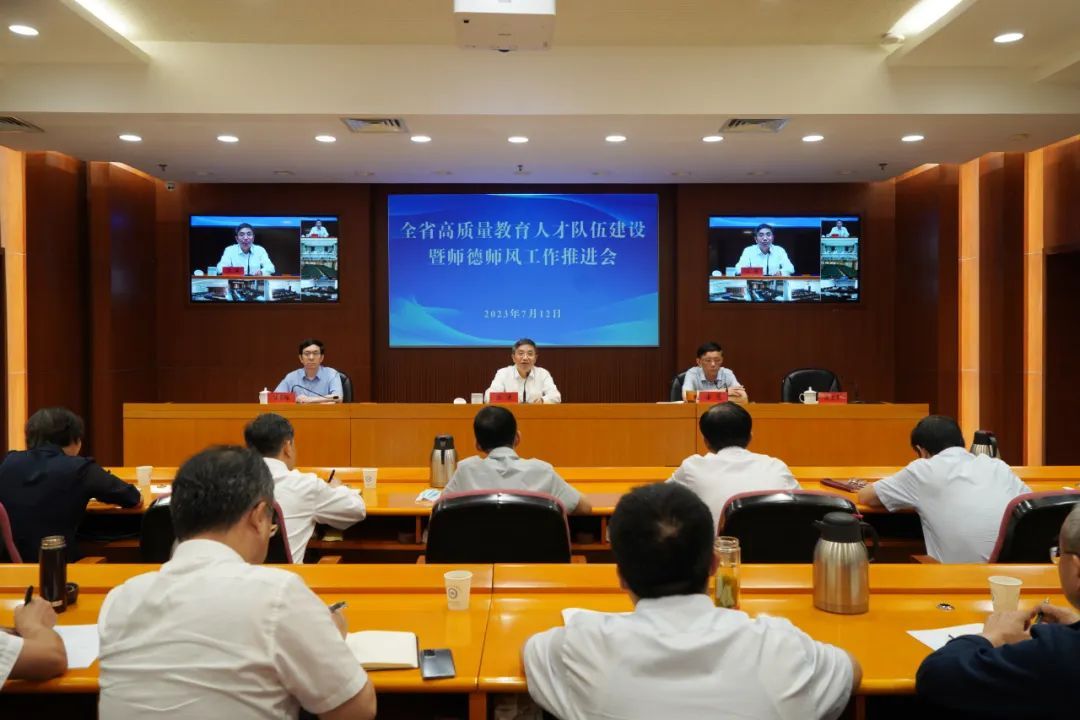 为深入学习贯彻习近平总书记在中央政治局第五次集体学习时重要讲话精神和考察江苏时重要讲话重要指示精神,7月12日,省教育厅召开推进会,研究部署全省高质量教育人才队伍和师德师风建设工作。省教育厅厅长、党组书记、省委教育工委书记江涌出席会议并讲话,副厅长潘漫主持会议,机关党委书记汪国培出席会议,学院副院长操阳于教育厅主会场参加会议,副院长洪涛和中层干部于学院图书馆报告厅分会场参加会议。