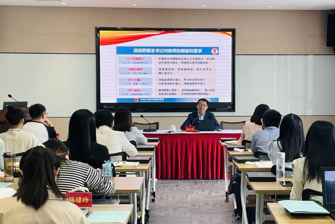 开班典礼结束后,入职培训新教师研习营正式开始,周春林以“教育是个良心活”为题,为全体新教师讲授了入职第一课。周书记结合习近平总书记对教师的期望和要求,阐述了高校教师的思想政治要求、道德规范和行为准则,要求全体教师热爱教育事业,认真履行教书育人职责,把师德师风作为第一标准,守牢师德底线和意识形态主阵地,潜心修炼,倾尽全力,奉献所有,成为学生学习的榜样和典范。