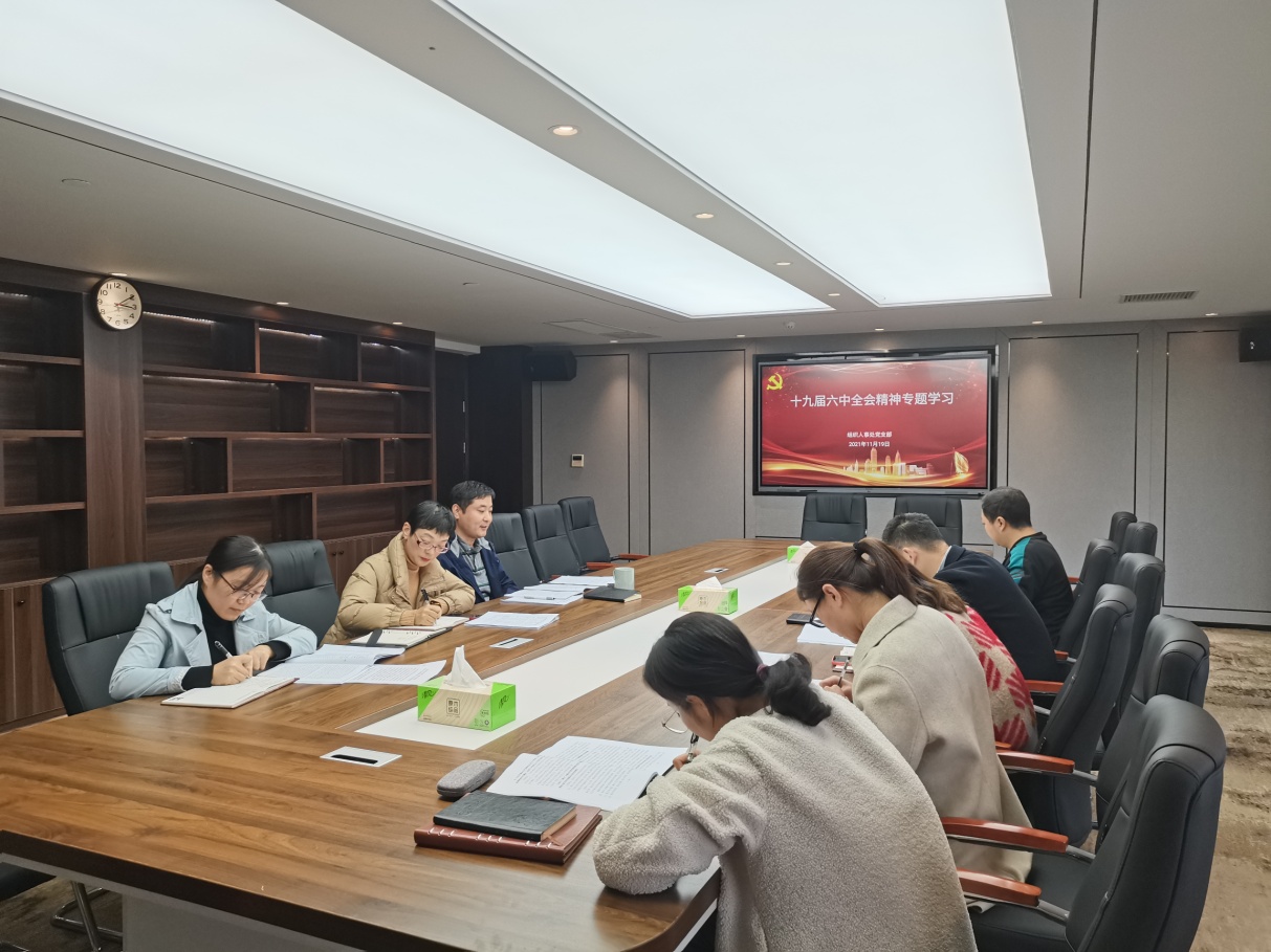 11月19日下午,组织人事处党支部组织开展了党的十九届六中全会精神专题学习会,本次专题学习由支部书记汪亮主持。
