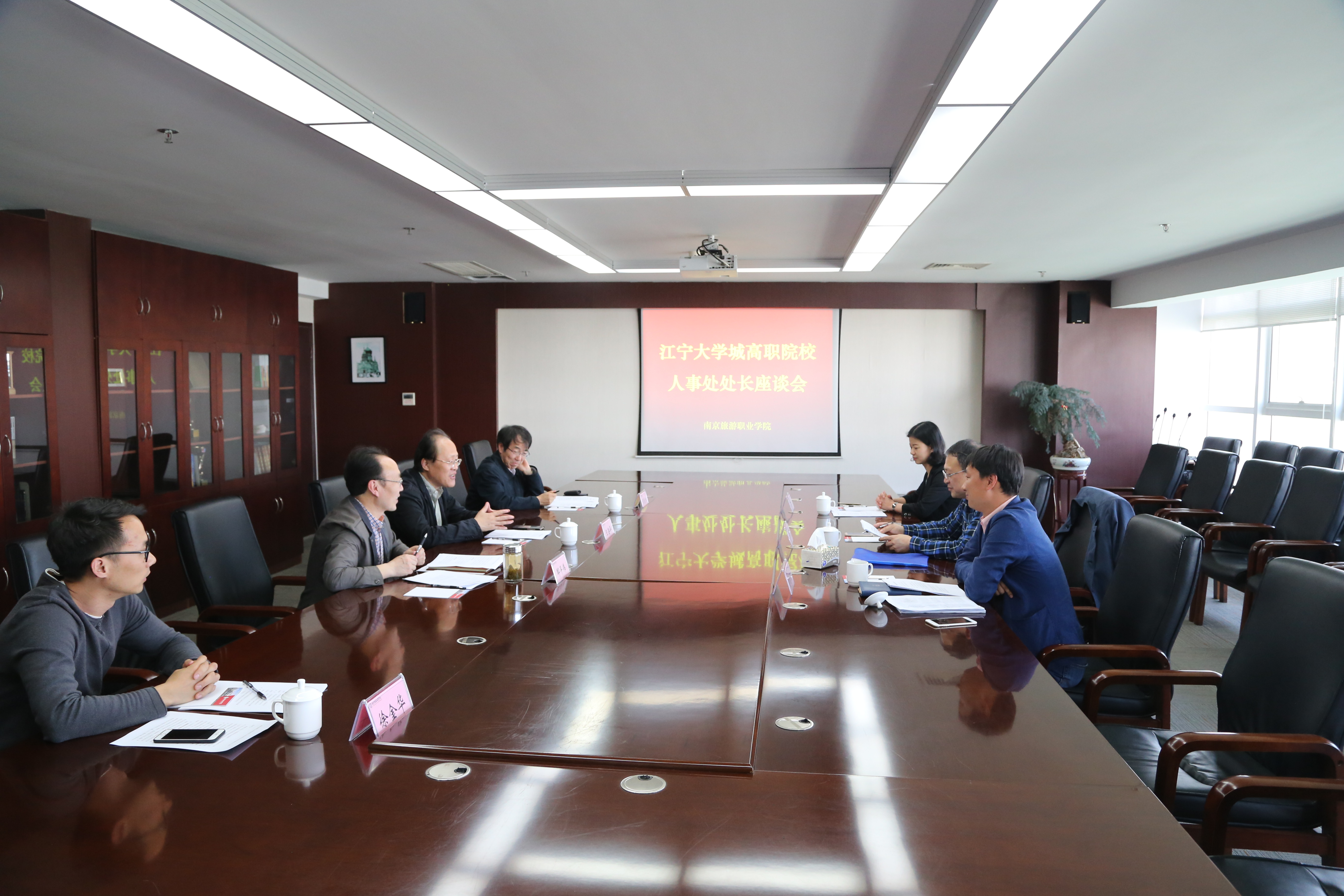 4月19日下午,江宁大学城高职院校人事处处长座谈会在我校召开,江苏经贸职业技术学院、江苏海事职业技术学院、南京交通职业技术学院人事部门负责人参加了会议。学校党委书记王海平,党委副书记、校长周春林出席会议。会议由组织人事处处长邸平伟主持。