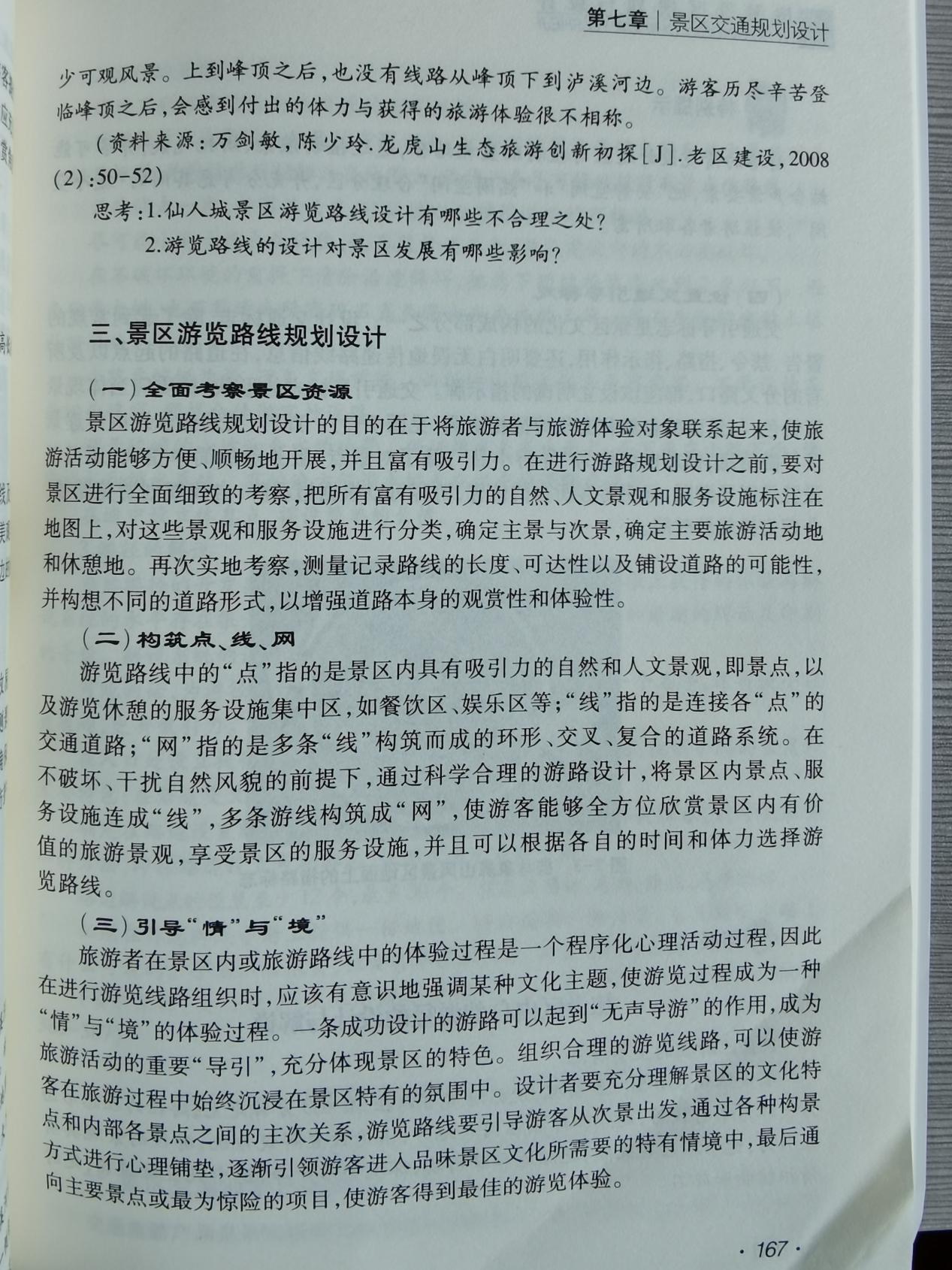 (3)第七章“景区交通规划设计”中的第二节“景区游览路线规划设计”——景区游览路线规划设计P167