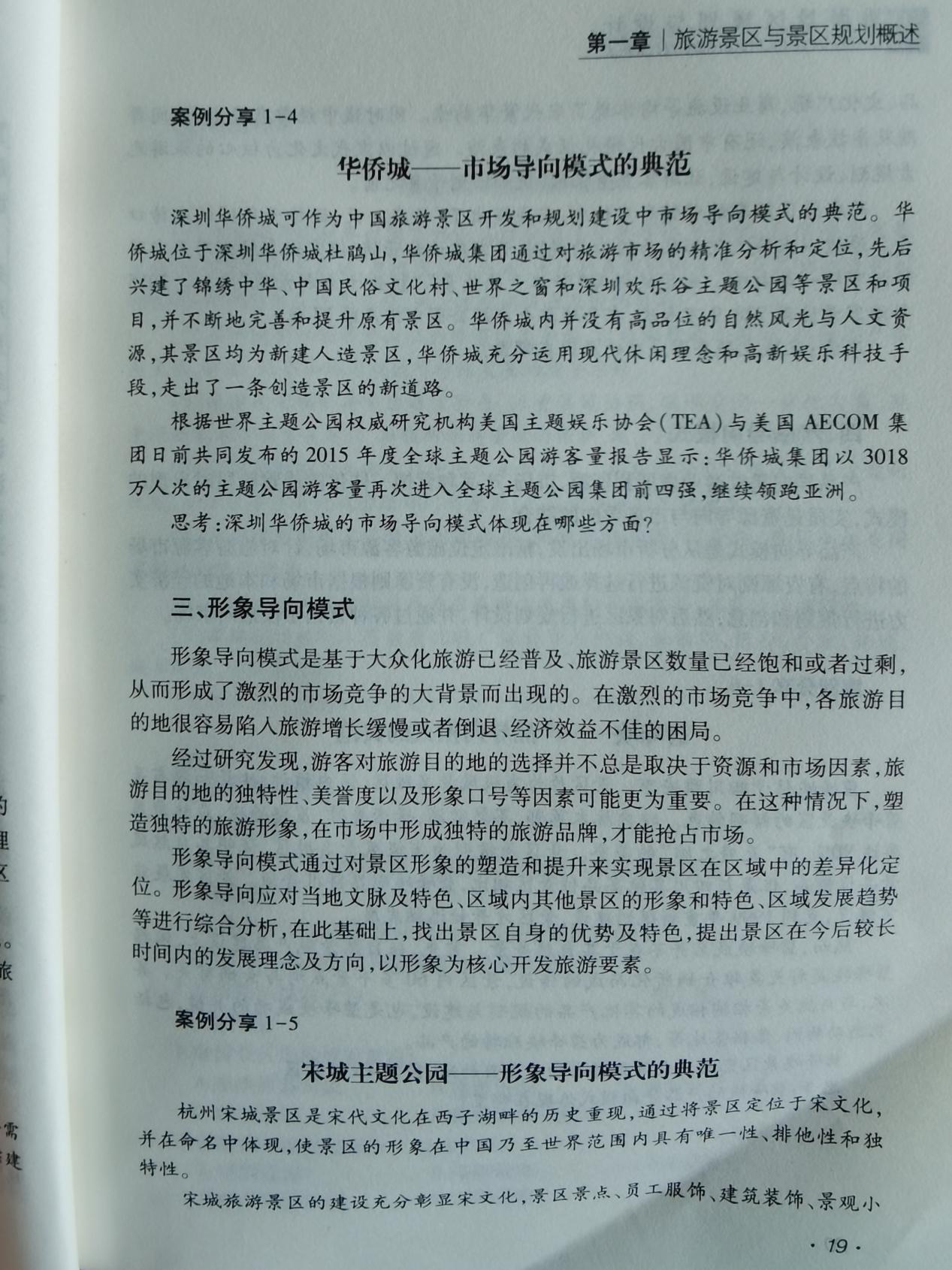 (1)第一章“旅游景区与景区规划概述”中的第三节“景区规划的模式”——形象导向模式P19