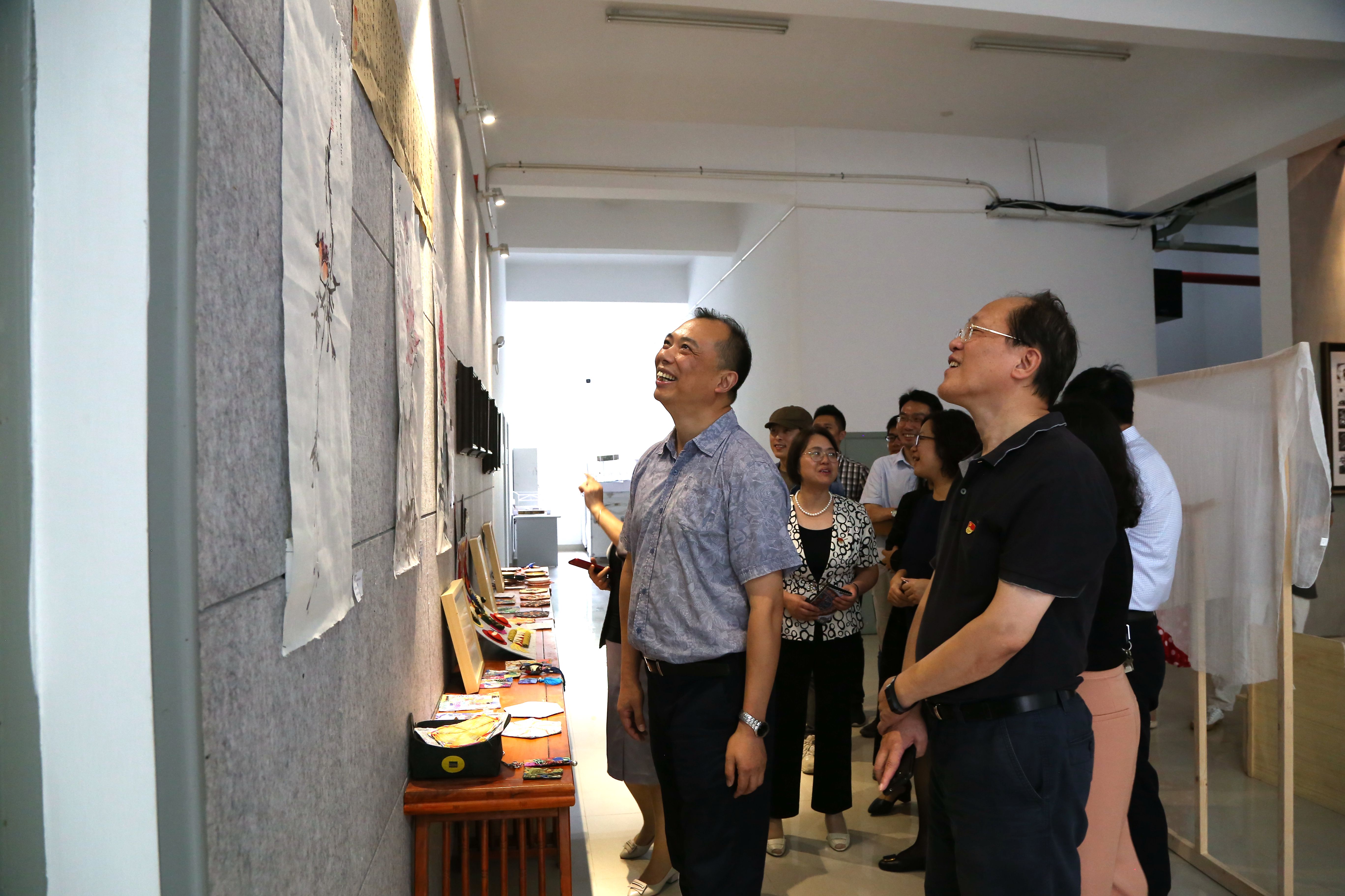 学院领导对本次的参展作品给予了高度肯定,并表示人文艺术学院以师生书画展的形式践行“不忘初心 牢记使命”主题教育活动,政治站位高、主题形式好,值得推广。学院领导还与创作者们亲切交谈,与全体参展教师们合影留念,勉励师生们继续努力以更多更好的作品献礼祖国70周年。