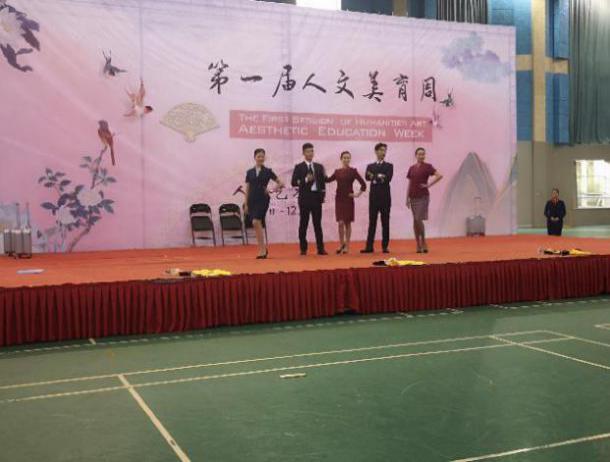 曹娅丽讲话人文艺术系各专业学生围绕美育教育主题,进行了精彩的文艺表演。其中有传递传统文化的古典舞,也有剪纸、插花等非物质文化遗产的技艺秀,还有活力四射的健美操、现代舞,不同形式的文艺表演充分展现了我系师生弘扬和践行中华美育精神的动人风采。