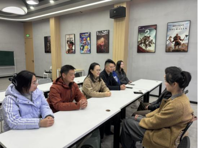 师生一行先后参观了唯晶科技的原画设计工作室、游戏研发中心及VR技术实验室,近距离观摩游戏角色设计、场景建模、动画制作等核心工作流程。企业技术总监结合经典合作项目,详细介绍了数字艺术在游戏开发中的应用场景,重点解析了当前行业对原画设计、交互设计人才的技能要求与素养标准,让师生对专业应用前景有了直观认知。座谈会中,廉亚威表示,艺术与会展党支部始终将“服务专业发展、助力学生成长”作为党建工作与业务融合的关键抓手,此次走进唯晶科技,既是落实党支部党建引领专业建设责任的具体实践,也是精准对接产业需求、优化人才培养方案的重要举措。吴丹从学院发展层面强调,数字媒体艺术设计专业作为对接文化创意产业的核心专业,其发展必须紧跟行业前沿,而党建引领下的校企深度融合,正是推动专业建设与产业需求同频共振的重要路径。希望以此次活动为起点,构建“党建共建、人才共育、资源共享”的长效合作机制,为学生成长成才搭建更广阔的实践平台。
