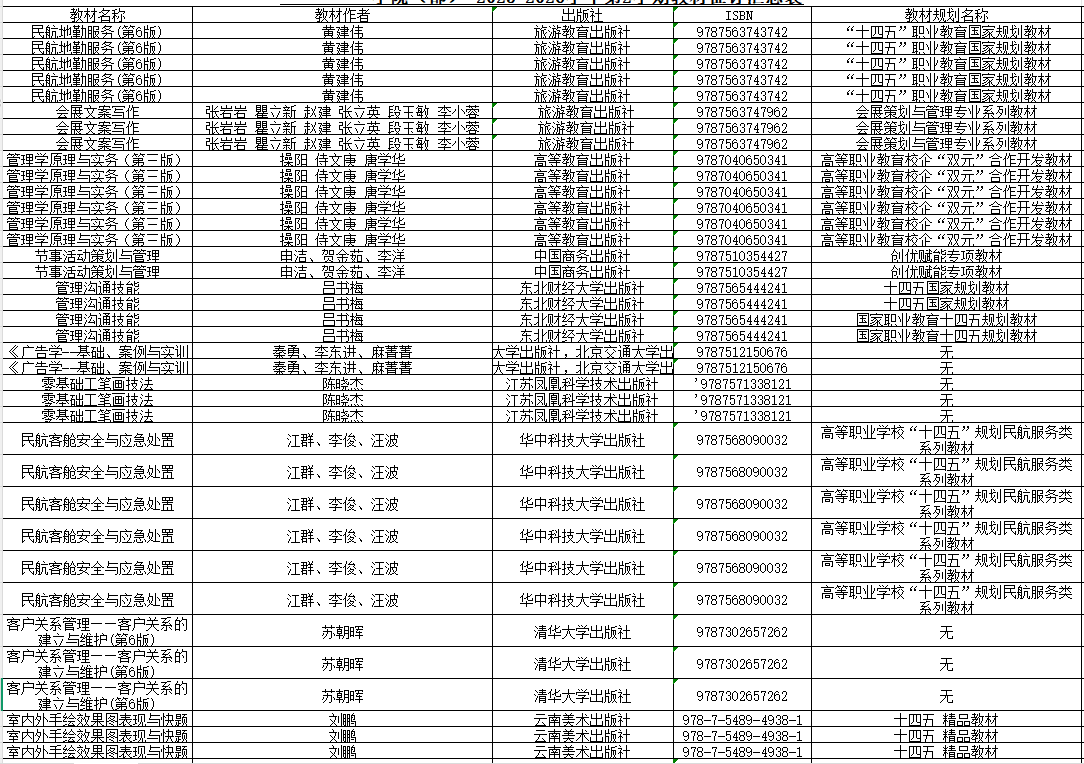为加强对教学工作的指导,促进教材选用工作更加科学、可行,根据《南京旅游职业学院教材管理办法》,现将人文艺术学院2025-2026学年第2学期选用教材公示如下: