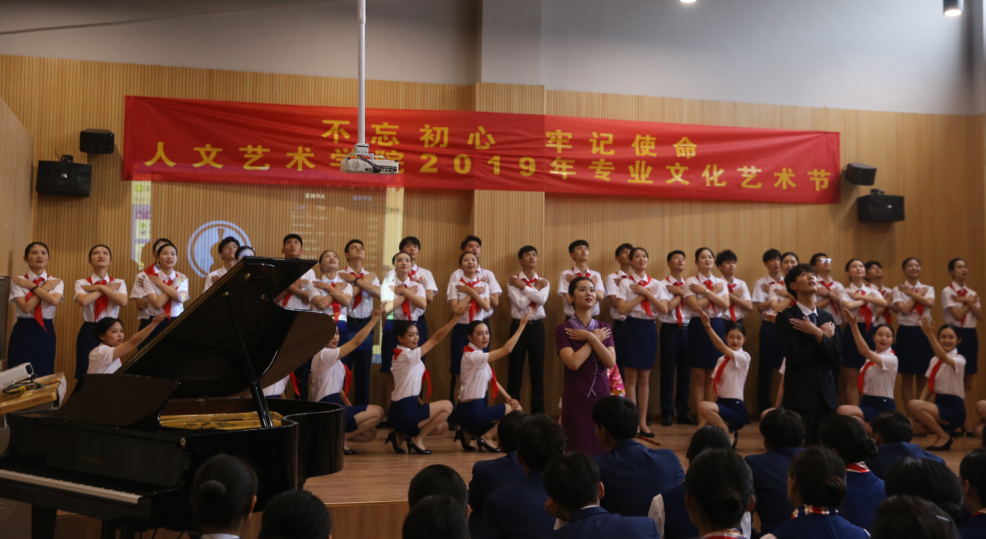 乘务教研室师生经过层层选拔、精心准备,在开幕式上围绕“艺匠至心-传承中华文化”的主题进行了精彩的文艺表演。有颂扬伟大祖国母亲的“祖国啊,我爱你”大合唱,也有生动展示各民族特色的民族舞蹈,还有师生共同演奏、解读,共享音乐与文字之美的配乐诗朗诵,不同形式的文艺表演充分展现了我院师生对传承中华文化的践行。