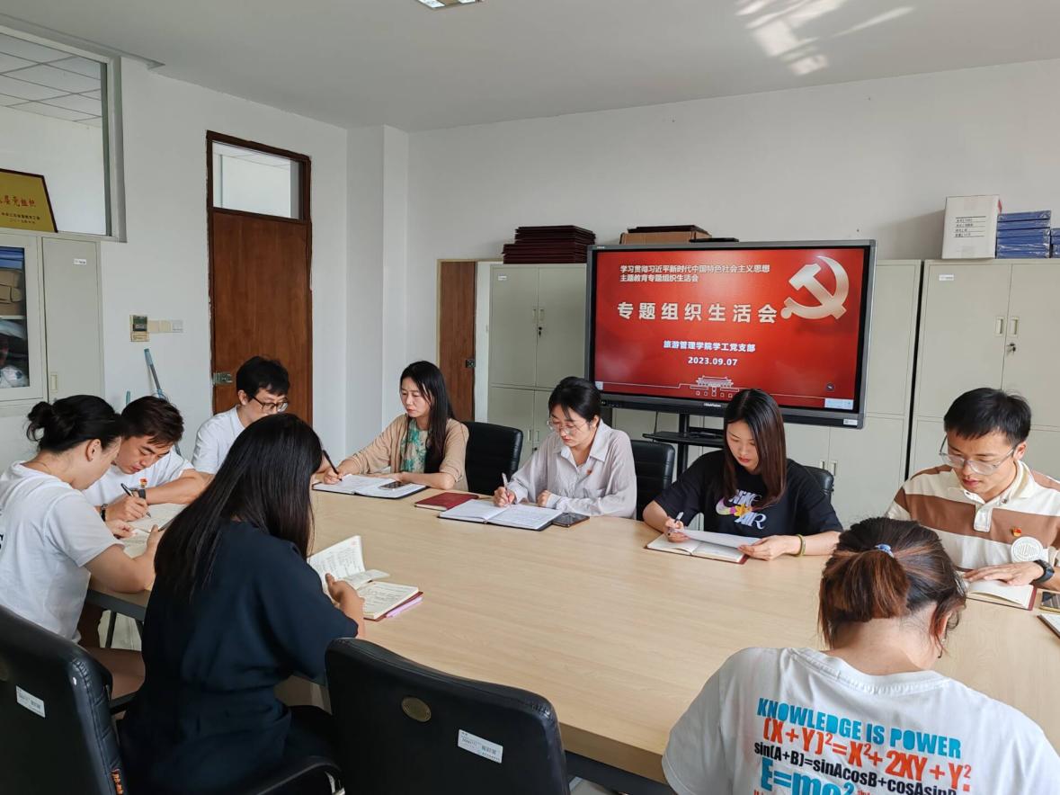 9月7日下午,旅游管理学院学工党支部组织全体党员开展学习贯彻习近平新时代中国特色社会主义思想主题教育专题组织生活会,本次专题组织生活会由旅游管理学院学工党支部书记王楠主持,支部全体党员参加。