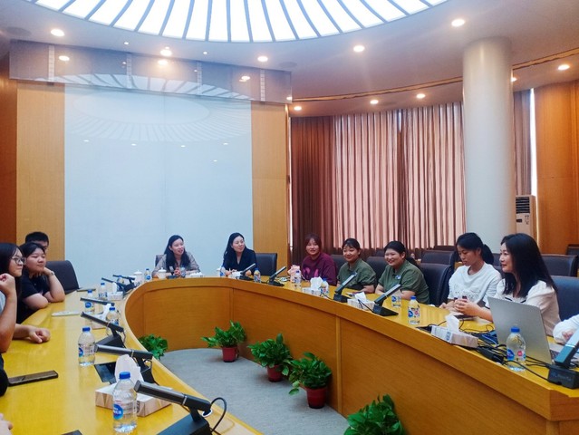 座谈会上,实习生们逐一进行自我介绍,结合岗位和实习经历踊跃发言,畅谈感悟,探讨困惑。在与学生交流时,丁洁表达了学院对同学们的关心关怀,希望同学们在工作中善于总结、时常反思、学会沟通,通过实习提升自己的专业能力。霍艳杰对大家所展现出的实习激情和认真的学习态度表示肯定赞扬,希望同学们能认真履行岗位职责,正确看待实习中遇到的困难,为将来走向工作岗位做好准备。