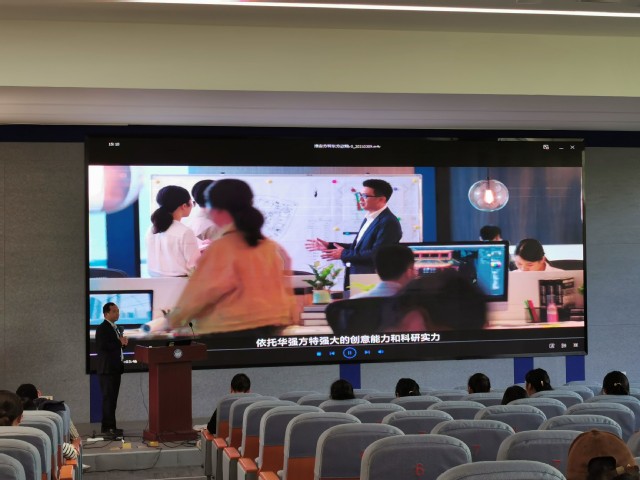 接下来,华强方特(淮安)旅游发展有限公司的人力资源部经理范增正通过播放淮安方特东方欲晓景区宣传片、ppt展示、问答交流等方式向同学们介绍集团的概况、职业发展目标、实习生项目、人员需求以及选择该单位的理由等,并介绍了方特专属新员工的“梦系列”专项培训项目、“方特E学堂”等培训学习机制。
