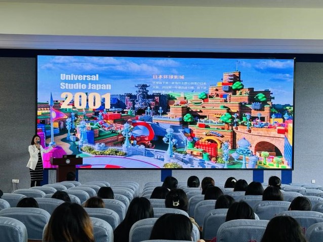 随后,北京环球影城的校园招聘顾问李青为同学们介绍了北京环球影城的发展概况和岗位需求。现场气氛非常热烈,同学们积极与企业代表互动交流。